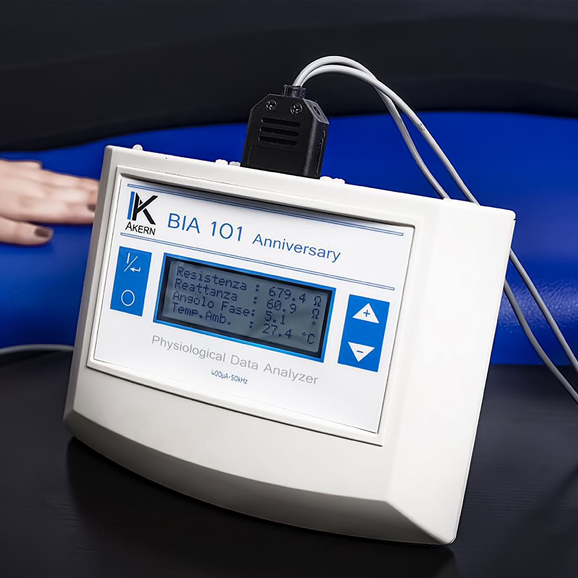 Il BIA 101 Anniversary è una tecnologia avanzata progettata da AKERN® per offrirti una valutazione completa e accurata della tua salute. Utilizzando una tecnica chiamata bioimpedenza, questo dispositivo invia una piccola corrente elettrica attraverso il tuo corpo e misura la resistenza elettrica. Queste misurazioni mi forniscono informazioni preziose sul tuo corpo, come la percentuale di grasso corporeo, la massa muscolare e il livello di idratazione.
